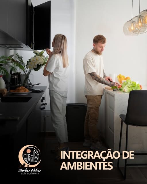 Para criar uma sensação de amplitude e fluidez, pense em espaços integrados, como a conexão entre sala de estar e cozinha. Ambientes abertos podem favorecer a convivência e ainda maximizar o uso do espaço, especialmente em construções menores.